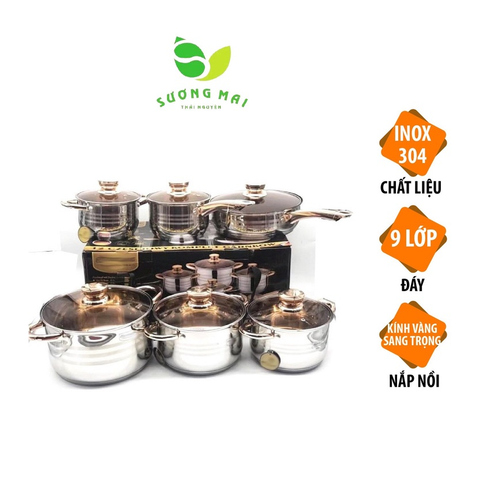 BỘ NỒI INOX 6 MÓN, ĐẾ 9 LỚP NẮP KÍNH, SANG TRỌNG - ENGELNERG